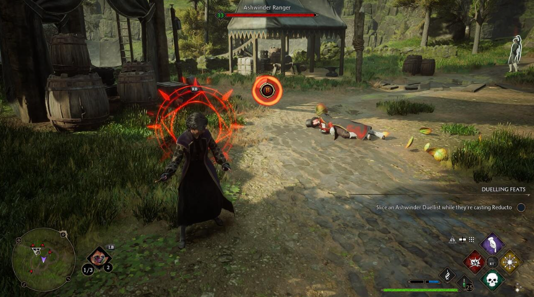 물론 아바다 케다브라의 손길만 닿았어도 단숨에 처리할 수 있었겠지만, 이 순진한 짐승이 나뭇잎 한 무더기에 완전히 쓰러지는 모습을 보면서 호그와트 레거시 초반을 떠올리며 눈물을 흘리고 싶었습니다. “모두 저주해버려라”라는 검증된 방법에서 조금만 벗어났더라면 훨씬 쉽게 제거할 수 있었던 거미굴, 애쉬윈더와 밀렵꾼 무리가 떠올랐기 때문입니다.