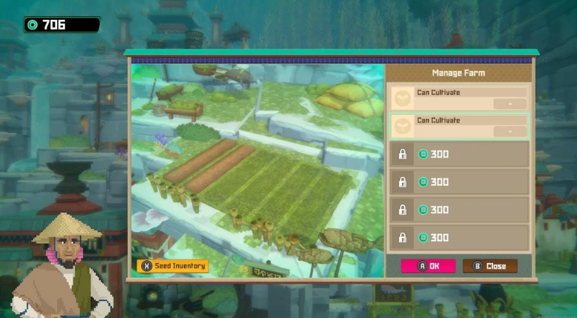 총 6개의 슬롯이 있으며 그 중 2개는 바로 사용할 수 있습니다. Gumo에서 다른 것을 구입해야 합니다. 또한 바다 마을(Sea People Village)의 씨앗가게(Seed Shop)에서 Kazhin에게 Seaweed Farm용 씨앗을 구입할 수 있습니다.