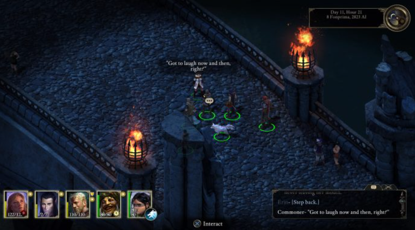 동시에 당신과 당신의 이상한 친구 분대가 가진 능력에 의해 상황이 크게 영향을 받습니다. 동물과 대화할 수 있는 능력은 상황을 정말 뒤흔들 수 있습니다. 죽은 자와 대화할 수 있게 해주는 주문이 있고, 때때로 말을 할 만한 가치가 있는 사람에게 그 주문을 낭비할 수 있습니다. 언젠가는 중요한 고블린 앞에 무릎을 꿇고 그들의 발가락에서 반지를 빼내려고 시도할 수 있습니다. 이 모든 것이 Divinity: Original Sin과 매우 유사한 전투 시스템과 결합되었습니다. 기름통을 부수고 들판 전체를 불태울 수 있습니다. 사람들 뒤로 몰래 다가가 난간에서 발로 차버릴 수 있습니다. 신발을 던질 수 있습니다. 당신의 플레이 시간은 전투에 유리하게 약 70:30으로 흔들리고, 스타일을 처음 접하는 경우 어려울 수 있는 세부적인 방향의 턴 기반 항목입니다.