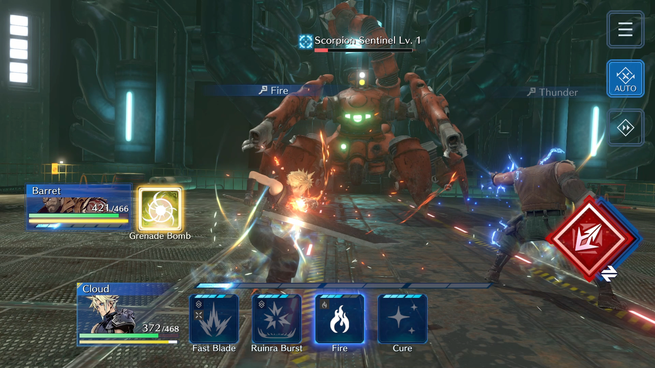 파이널 판타지 7 에버 크라이시스의 전투 시스템은 파이널 판타지 7에서 전투를 주도하는 원래의 Active Time Battle 시스템을 기반으로 합니다. 파이널 판타지 7 에버 크라이시스의 전투는 특정 적, 보스, 장소의 재현으로 향수를 불러일으키지만, 새롭고 현대화된 비주얼은 이미 알고 있다고 생각했던 장소에 대한 새로운 시각을 제공합니다. 한계 돌파와 몬스터 소환은 컷씬을 통해 이루어지며, 자동 전투 또는 전투 속도 변경을 위한 모바일 게임의 새로운 옵션을 통해 파이널 판타지 7 에버 크라이시스의 난투 속도를 제어할 수 있습니다.