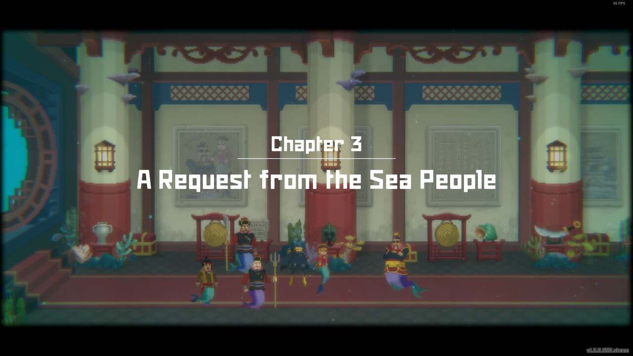 긴 컷씬이 끝난 후, 바다 사람들은 도움을 요청하고 바다 사람들 거울 과 마을 지도를 줍니다 . 바다사람 거울을 이용하면 바다사람 마을로 돌아갈 수 있지만, 낮에만 작동합니다. 잠시 후에 마을 지도를 사용하여 바다 사람들의 신뢰를 얻으겠지만 아직 아무것도 할 필요는 없습니다.