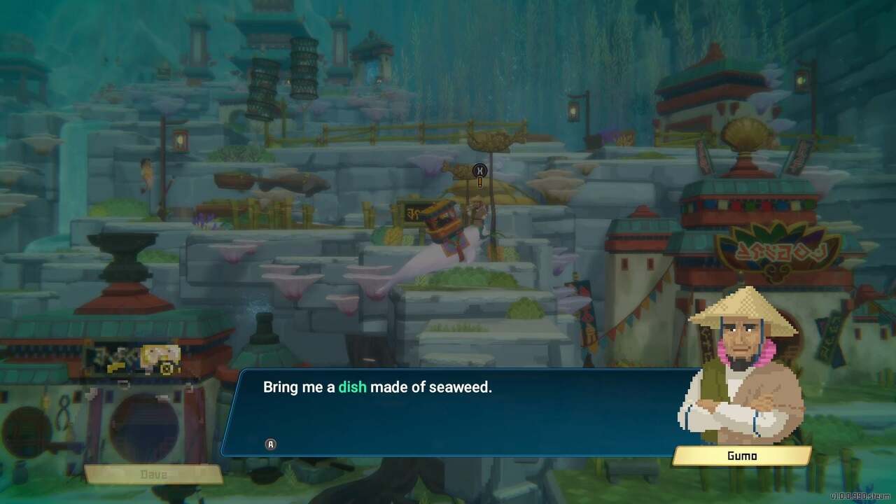 구모에게 해초 씨앗 봉지를 가져가세요. 그는 Sea People Village 오른쪽, Game Parlor 바로 왼쪽에 있습니다. 구모는 당신을 돕는 데 그리 열성적이지 않으며, 당신은 해초로 만든 요리를 만들어 자신을 증명해야 합니다.