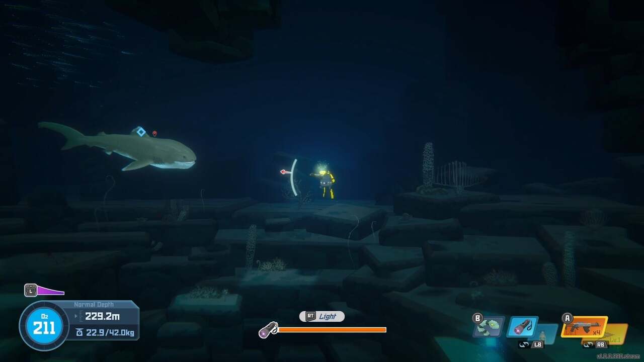 라이온피시를 처리한 후에는 다시 돌아가 아기 고래를 구한 다음 다시 레이더를 추적하세요. 이제 끝내야 해, 그렇지? 잘못된. 목적지에서 약 40m 떨어진 곳에서 화이트팁 암초 상어를 만나게 됩니다. 상어는 강할 수 있지만 당신은 전에 이 놈과 싸워 본 적이 있습니다. 선택한 무기로 그를 처치하세요. 그의 돌격 공격을 피하도록 조심하세요.