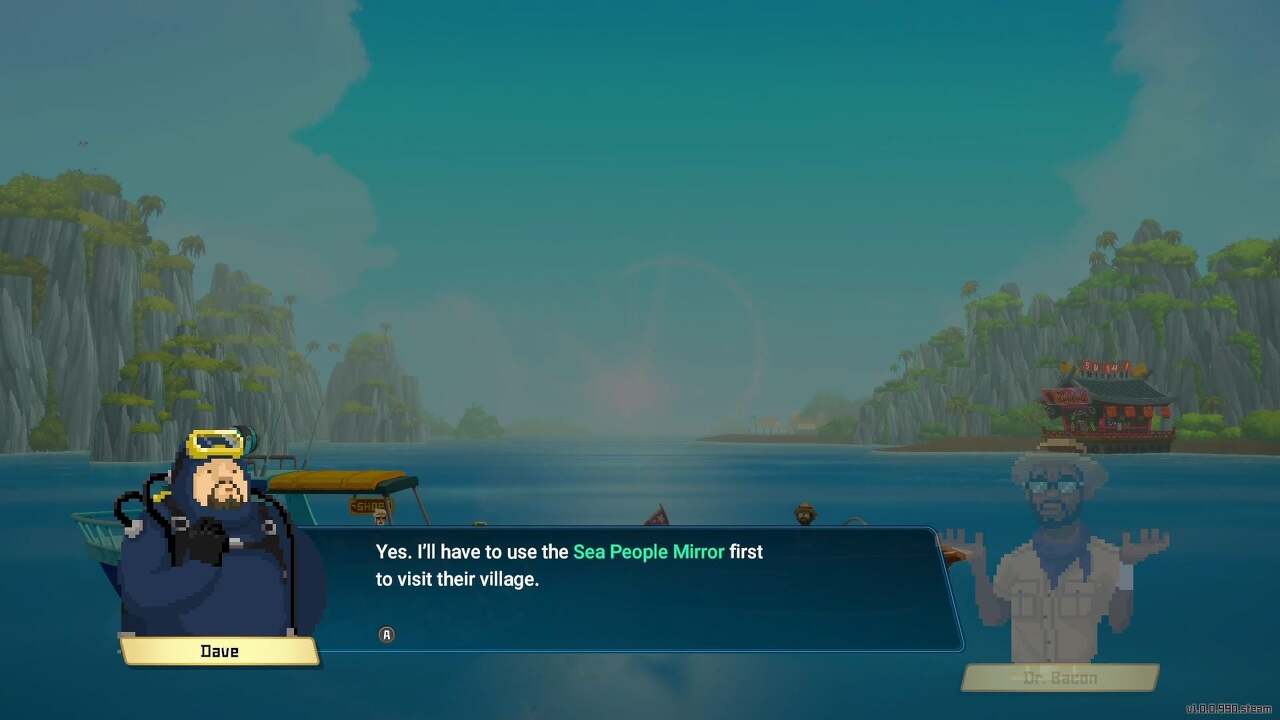 다음에 거울을 가지고 Sea People Village로 내려갈 때 몇 가지 새로운 퀘스트를 사용할 수 있습니다. Sea People Village로 거울을 가져가야 합니다. Depths에서는 거울에 접근할 수 없습니다.