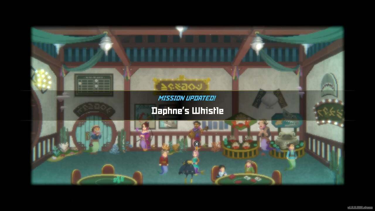 이기면 벨루가 휘슬을 줍니다 . 벨루가 호루라기를 다프네에게 돌려주면 다프네가 더 이상 사용할 수 없게 되어 줍니다. 휘파람을 사용하면 바다 사람들 마을을 더 빠르게 여행할 수 있도록 도와주는 벨루가를 부를 수 있지만 베이를 사용하려면 비용이 듭니다. 전체적으로 벨루가 호각 과 15크레딧을 보상으로 받게 됩니다.