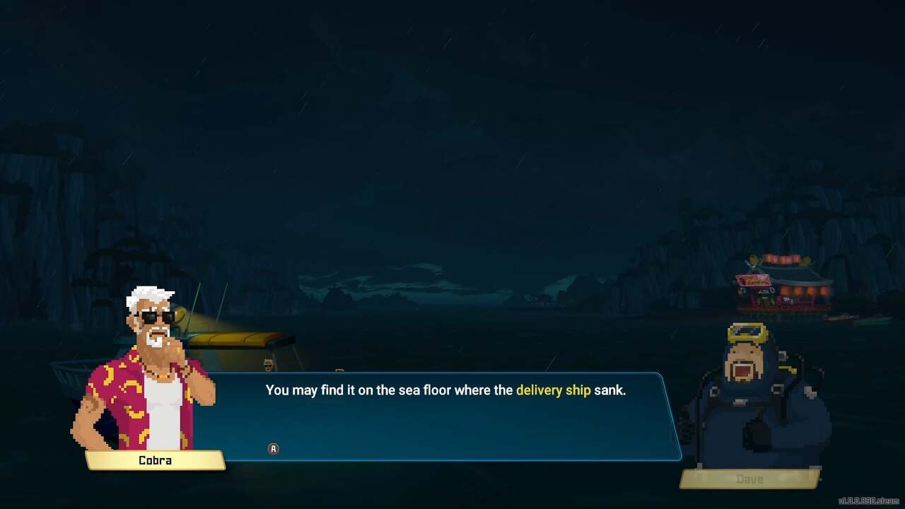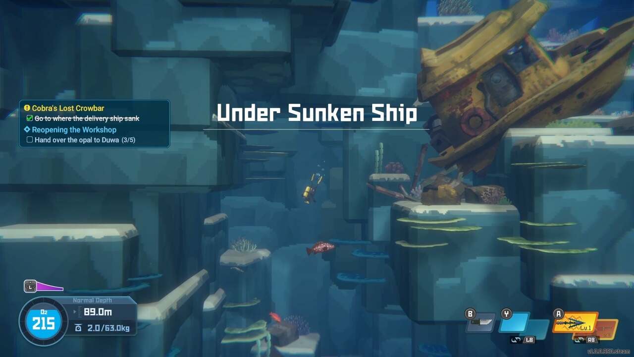 알고 보니 코브라는 지렛대를 주문했지만 배달선이 침몰하면서 잃어버렸습니다. 코브라의 지렛대를 찾는 방법은 다음과 같습니다. 먼저 쇠지레를 찾으려면 가라앉은 수송선으로 돌아가야 합니다. 이전과 마찬가지로 수면 아래 약 100미터, 자이언트 블루 홀 왼쪽과 화면 왼쪽에 있습니다.