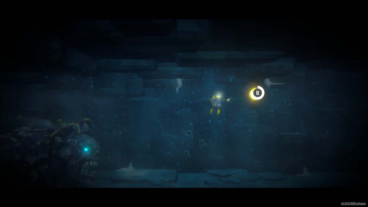 다음 방에 도착하면 마우스 버튼이나 오른쪽 방아쇠를 사용해 위쪽의 도르래를 잡고 아래로 헤엄치세요. 이렇게 하면 해당 지역의 시작 부분에 닫힌 문이 열리므로 더 쉽게 이곳으로 돌아올 수 있습니다.