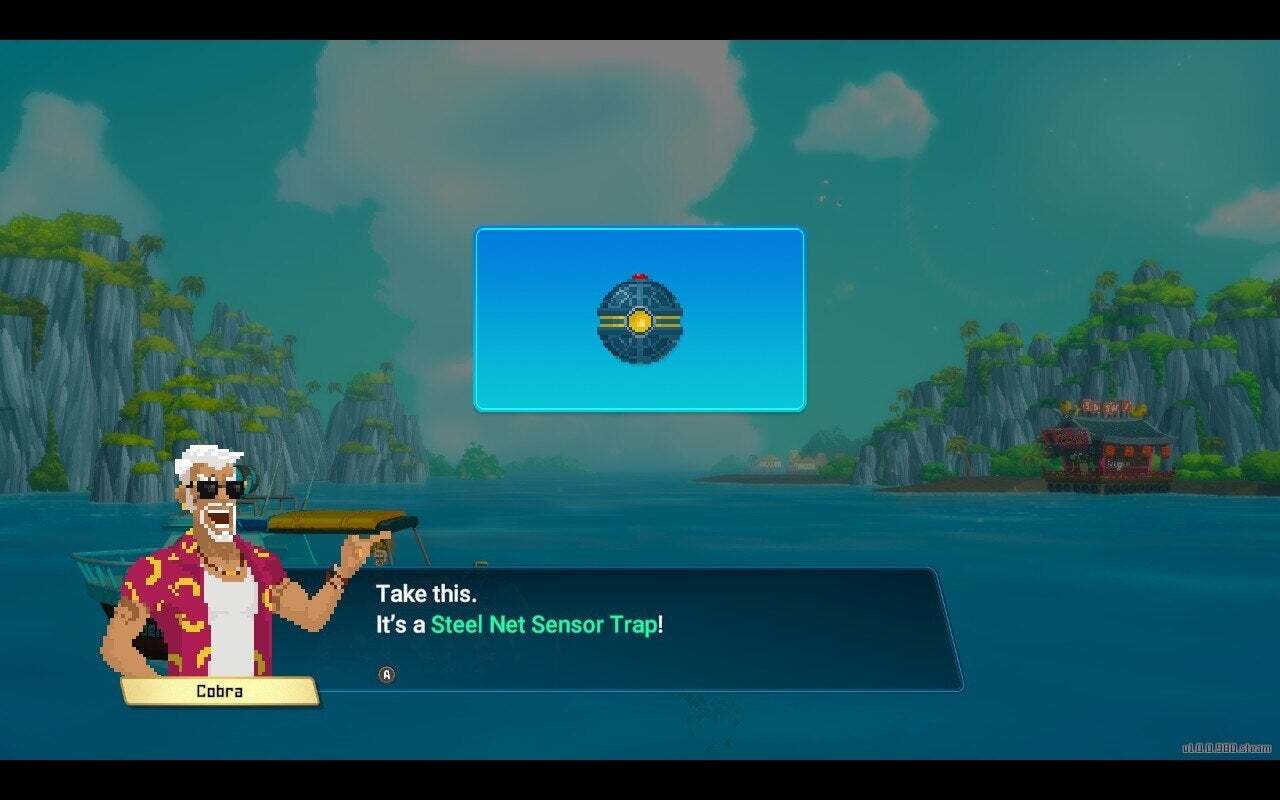 하지만 그 전에 우리는 참치 잡는 법을 배우기 위해 잠시 우회해야 합니다. 참치는 속도도 빠르고 체력도 좋아서 일반적인 방법으로는 효과가 없을 것 같아요. 운 좋게도 Cobra에는 Steel Net 센서 트랩이 있어 다이빙 드론에 접근할 수 있습니다.