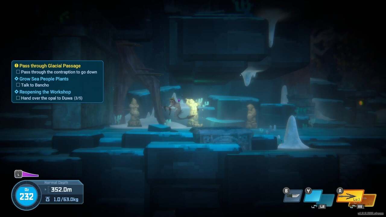 이 임무를 시작하기 전에 잠수복을 업그레이드했는지 확인하세요. 이 작업에서는 400미터가 넘는 깊이까지 들어가게 됩니다. 슈트가 좋을수록 산소 사용량도 줄어듭니다. 잠수복을 업그레이드할 여유가 없다면 이 임무를 완료할 수 있지만, 환경에서 산소를 찾는 데 신속하고 의존해야 합니다. Bei가 있는 경우, 잠금을 해제한 경우 Mima's Restaurant에서 Agar Dumpling(한천 만두) 또는 Lotus Dumpling(연꽃 만두)을 구입하는 것이 좋습니다. 특히 잠수복을 업그레이드할 여유가 없는 경우에는 더욱 그렇습니다. 더 많은 물고기를 잡으려면 진정제 총이나 그물 총을 다시 가져가세요.