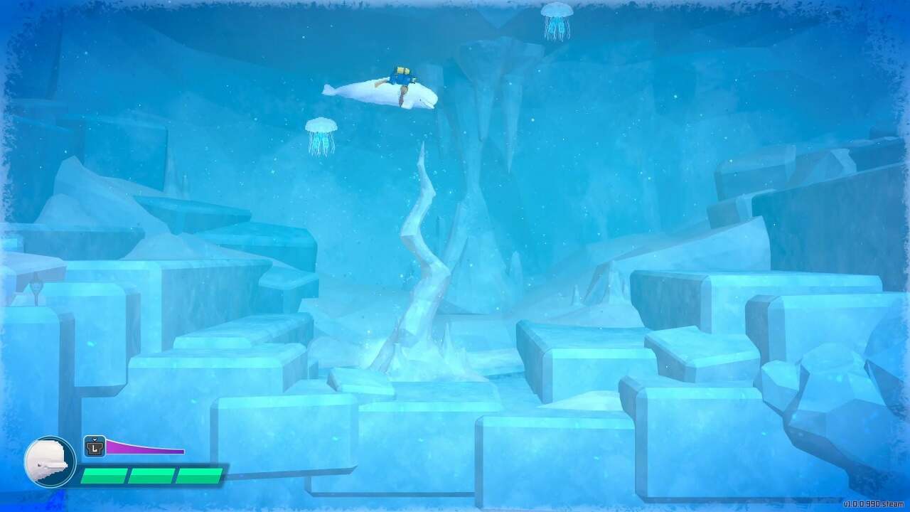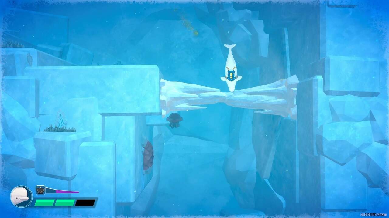 또 다른 성게를 지나친 후 천장에 있는 얼음 조각과 마주치게 되는데, 얼음 조각에 접근하면 바닥으로 확장됩니다. 벨루가의 숫양으로 해당 지역의 얼음 대부분을 파괴할 수 있지만, 이를 파괴할 수는 없습니다. 그들을 피하기 위해 바닥 가까이에 있으십시오.