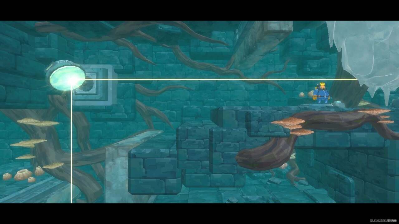 그러면 왼쪽 돌판의 얼음이 녹을 것입니다. 데이브로 전환하고 웅크린 채 현재 있는 지역 밖으로 걸어 나갑니다. Suwam 층의 석판 바로 근처에 있는 약간 높은 회색 바닥 위에 그를 서게 한 다음 다시 Suwam으로 전환합니다. 왼쪽 수준으로 수영하여 당깁니다. 이렇게 하면 데이브가 그 위에 서 있는 석판이 올라가고 레이저의 방향이 상위 레벨의 거울로 향하게 됩니다.