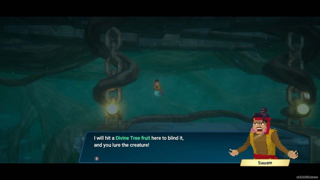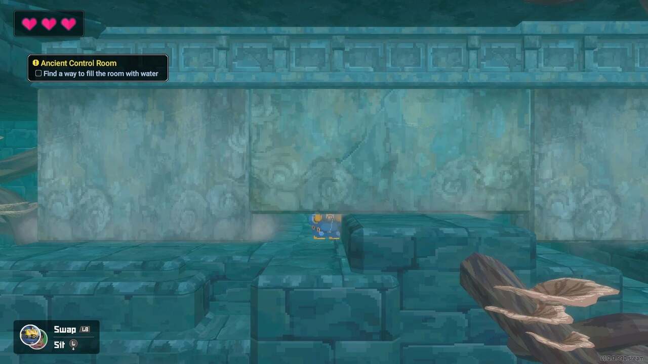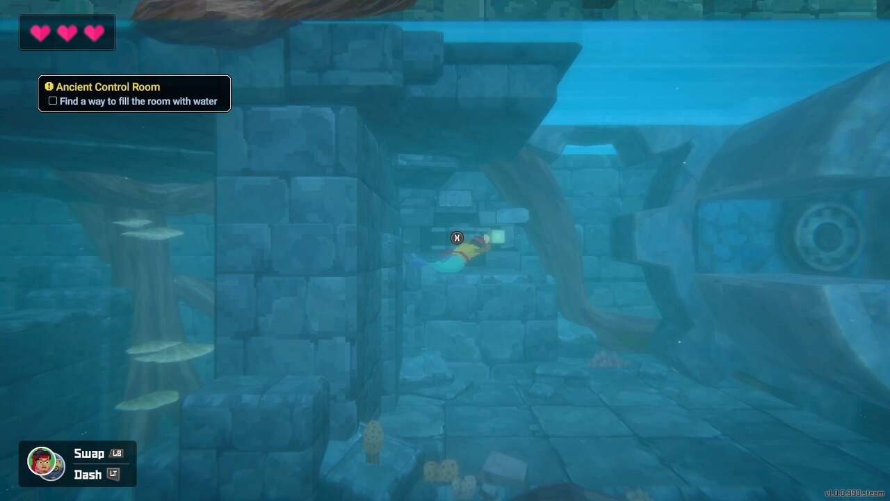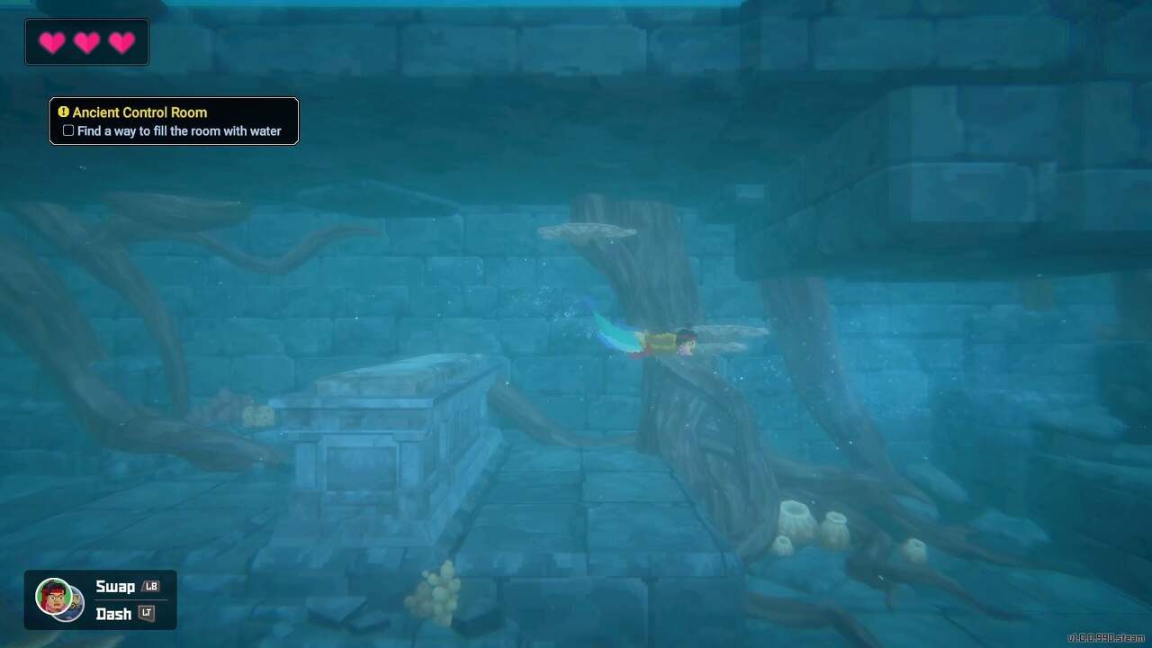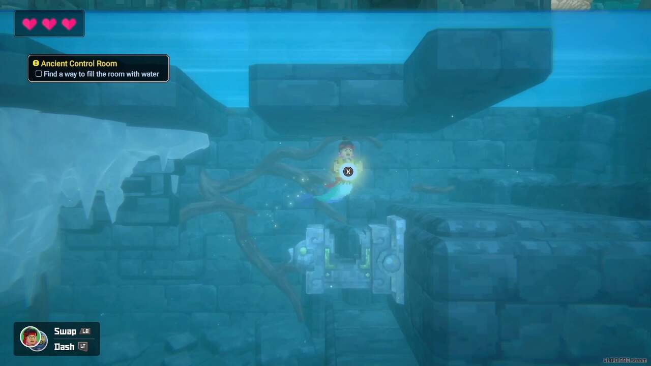 이 스위치를 활성화하면 수암의 길을 막고 있는 석판이 낮아집니다. Suwam으로 전환하고 대시를 사용하여 그가 조류를 지나 헤엄칠 수 있는지 확인하십시오.
