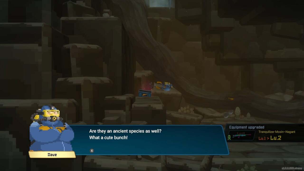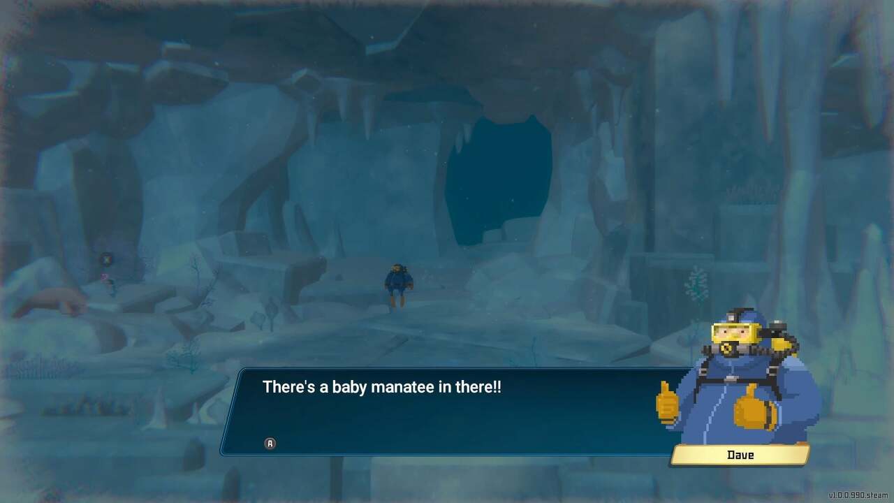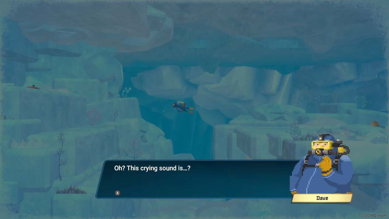 해당 지역에 들어가면 아기 해우의 울음소리를 들을 수 있으므로 소리가 나는 곳까지 따라가세요. 위쪽 입구에서 아래로 내려가다가 길이 갈라지면 왼쪽으로 가세요. 계속해서 길을 따라 위쪽으로 갔다가 아래쪽으로 가세요. 결국 데이브는 소리가 어디서 나오는지 인식하게 됩니다.