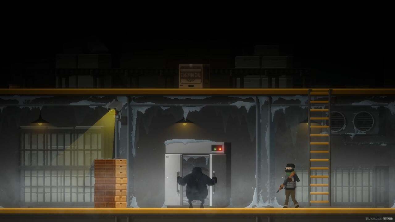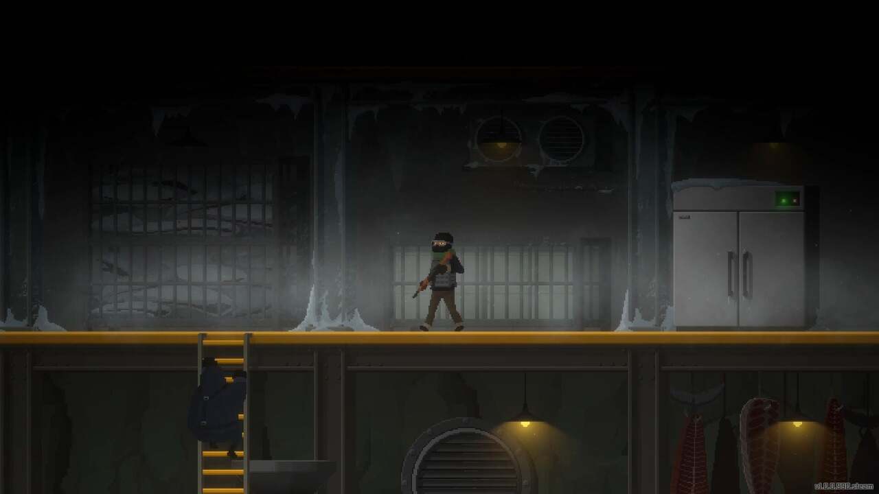 오른쪽에 있는 경비원이 오른쪽에 있는 냉동고를 지나가자마자 냉동고에서 나와 그를 따라가세요. 그가 사다리를 바라보고 있는 동안 사다리를 올라갑니다. 이번에도 타이밍이 매우 빡빡합니다. 그가 냉동실을 지나가자마자 냉동실에서 나가지 않으면 그는 돌아서서 사다리에 있는 당신을 보게 될 것이고 당신은 이 전체 과정을 다시 수행해야 할 것입니다.