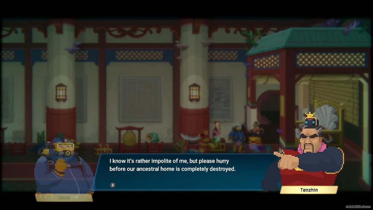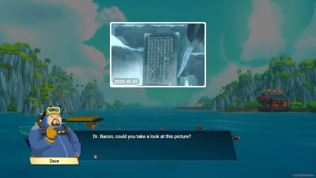 태블릿 해독이 끝나면 베이컨 박사는 주문인 것 같고 실제로 언어를 말할 수 없기 때문에 번역할 수 없다고 말할 것입니다. 데이브는 Niamo와 대화할 것을 제안하고 Sea People Village의 사원으로 돌아가세요. 보트에 거울을 가져다가 아래층에 있는 포털을 통해 두 번째 층으로 이동하세요.