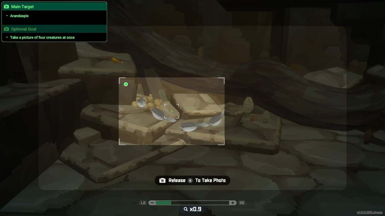 그것들은 Arandaspis라고 불리며 이상적으로는 4개 모두를 한 장면에 담는 것이 좋습니다. 그렇게 하려면 약 0.9배로 조금 축소하고 카메라를 약간 왼쪽으로 이동한 다음 그에 따라 카메라를 배치합니다. 아란다스피스는 원을 그리며 돌아다니므로 그들의 패턴을 관찰하세요. 네 명이 모두 촬영되면 사진을 찍으세요. 보트로 돌아올 때 사진 대가로 750골드를 받게 되며 , 보너스 목표를 완료하면 추가로 150골드를 받게 됩니다.