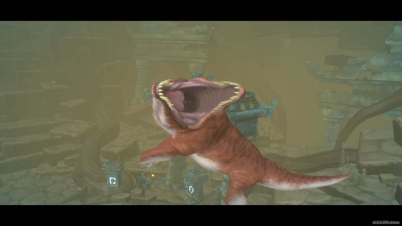 그러면 크로노사우루스가 그 돌을 당신에게 뱉을 것입니다. 바위 사이의 틈을 헤엄쳐 지나가거나 바위 위나 아래로 헤엄쳐 피하세요.