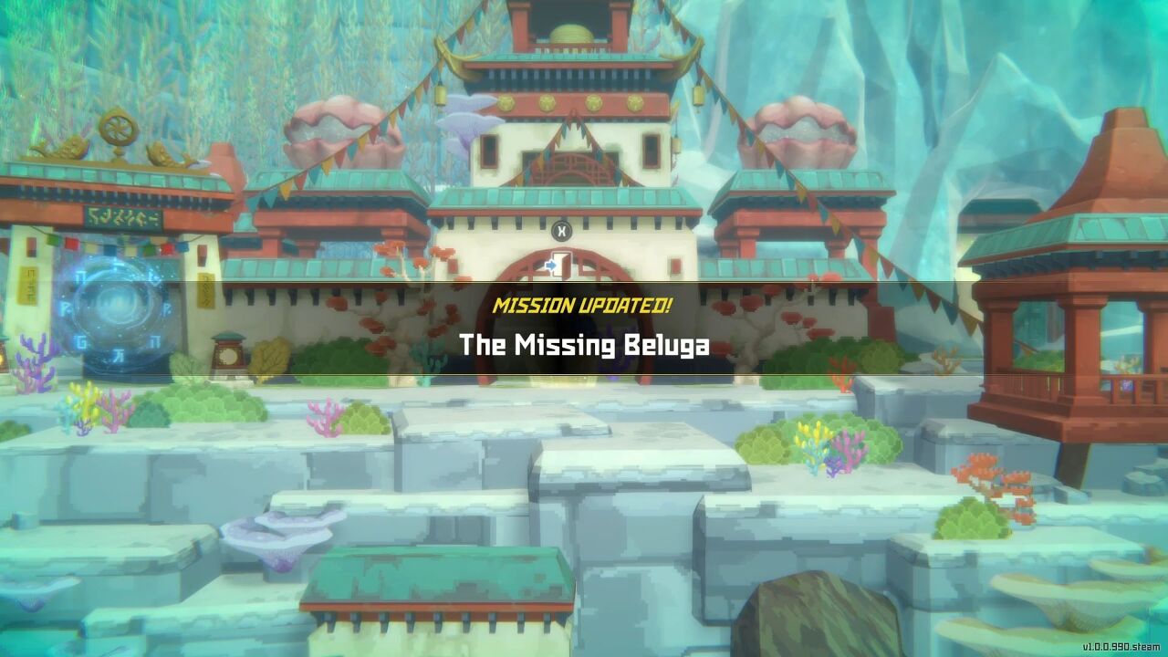 Tenzhin의 집을 떠나면 라모가 실종된 마을의 벨루가를 찾는 데 어려움을 겪고 있는 두 명의 경비원을 질책하는 컷신을 볼 수 있습니다. 그것을 찾는 것이 당신의 임무입니다. 빙하 지역으로 돌아가세요.