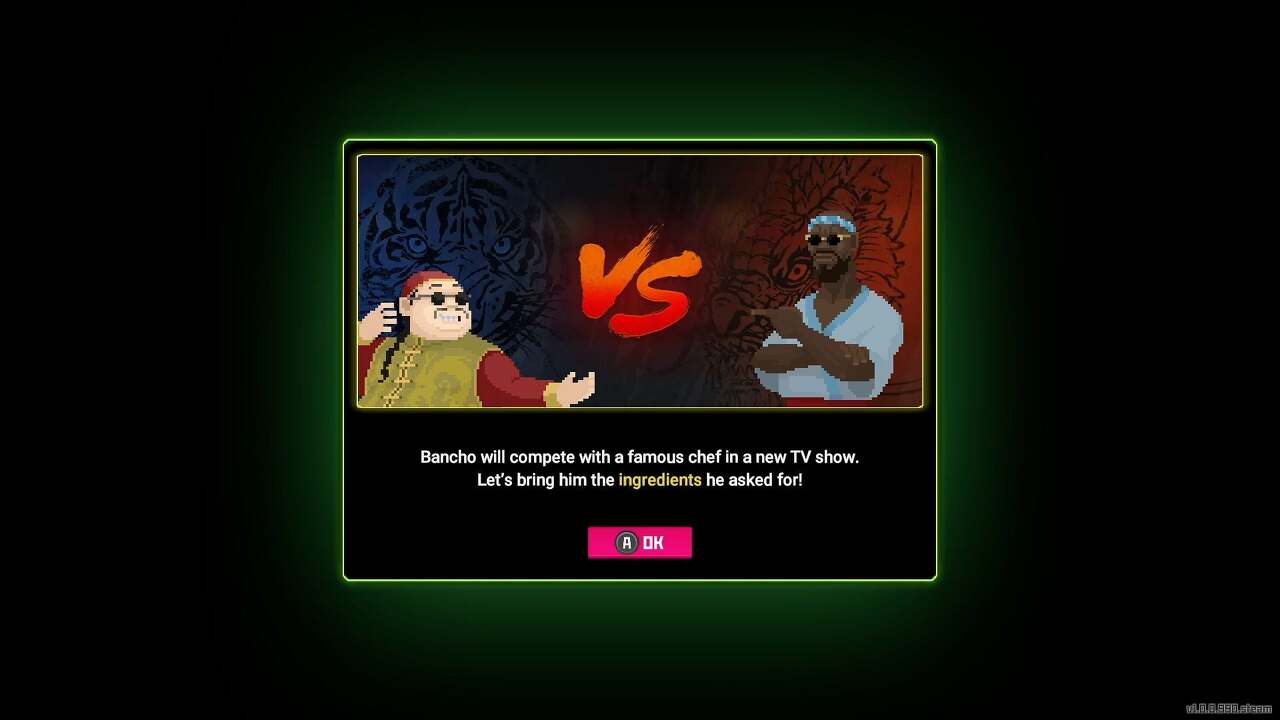 이 무렵, 반초스시에는 새로운 VIP가 등장합니다. 그의 이름은 왕팡(Wang Pang)이고, 그는 반초에게 중국 요리와 관련된 대결을 벌이도록 도전한다. 왕팡을 이기려면 반초 가 푸른점별관찰자 1개 , 밀 1개 , 올리브유 1개 , 계란 1개가 필요합니다 . 수심 130~250m에서 푸른점별관찰자를 찾을 수 있고, 농장에서 밀과 계란을 얻을 수 있으며, 요리 냄비에서 올리브 오일을 찾거나 직원을 파견하여 얻을 수 있습니다. 이 재료를 수집하는 데는 이틀밖에 주어지지 않으므로 이를 명심하세요.