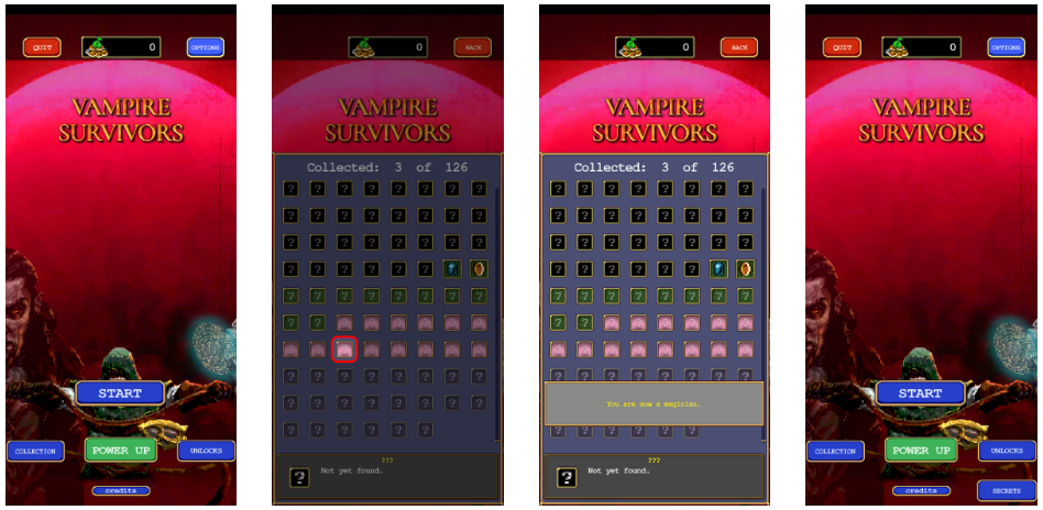 모든 주문은 비밀 메뉴에 입력해야 하며, 컬렉션 메뉴로 이동하여 노란색 기호 아이콘을 7번 탭하면 잠금 해제할 수 있습니다(아직 획득하지 않은 경우에도 마찬가지). 게임에서는 "당신은 이제 마술사입니다"라는 메시지가 표시되고 시작 화면에서 비밀 메뉴를 사용할 수 있습니다. 비밀 메뉴를 잠금 해제하는 "공식적인" 방법은 좀 더 복잡합니다. 위의 방법을 사용하면 시간이 좀 절약될 것입니다.