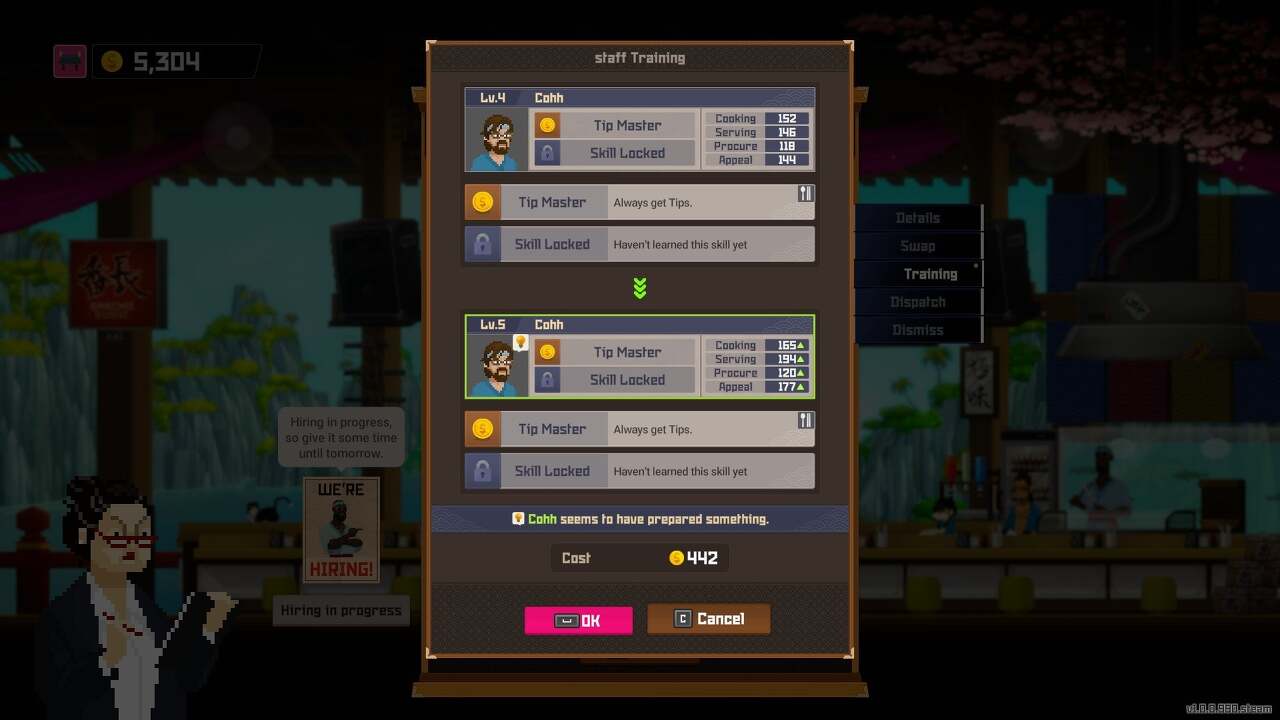 직원을 모집하고 교육하면서 새로운 요리법을 배울 수 있습니다. 메뉴의 아이콘 옆에 "[직원 이름]이(가) 뭔가를 준비한 것 같습니다."라는 문구와 함께 표시등이 보이면 직원이 레시피를 준비했다는 것을 알 수 있습니다. 지금까지 발견한 직원 레시피는 다음과 같습니다.
