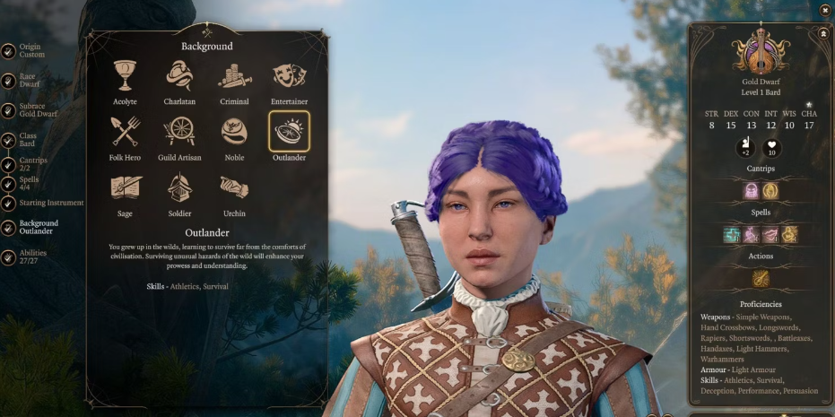 바드는 두 세계의 장점을 모두 시험해보고 싶어하는 플레이어를 위한 마법과 근접 공격의 훌륭한 조합입니다. 그들은 또한 믿을 수 없을 정도로 말하는 능력이 뛰어나므로 자신이 선택하는 거의 모든 대화 옵션에 능숙해지기를 원하는 플레이어는 반드시 Bard를 메인 클래스로 선택해야 합니다.