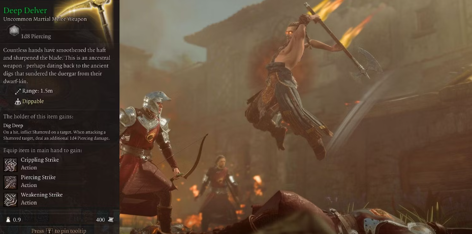 다른 전쟁 선택과 달리 이 조상 무기에는 적중 시 산산이를 입히는 힘이 있는 Dig Deep이라는 기술이 포함되어 있습니다. 이 상태 효과는 적을 다시 공격할 때 플레이어가 추가로 1d4의 관통 피해를 입힐 수 있음을 의미합니다.