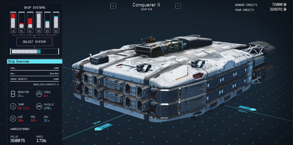 컨커러 2는 엄청난 가격을 고려하면 그 이름에 걸맞은 제품입니다. 하지만 이 함선을 스타필드 최고의 함선 중 하나로 만드는 것은 가격뿐만 아니라 엔진 성능도 마찬가지입니다. 그렇게 많은 화물과 승무원을 수용할 수 있는 무거운 함선의 경우 무기가 그 거대한 크기에 비해 약간 불안정하더라도 엔진이 그렇게 잘 작동한다는 것은 놀라운 일입니다.