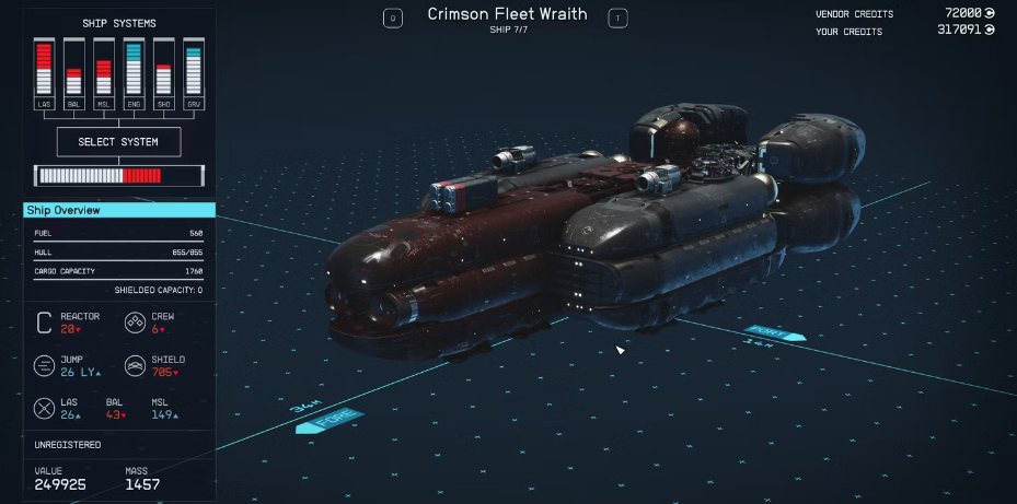 - 크림슨 함대 레이스 및 컨커러 2와 같은 스타필드에서 가장 비싼 함선은 강력한 무기, 대용량 화물 용량 및 강력한 방패와 같은 인상적인 기능을 제공합니다.