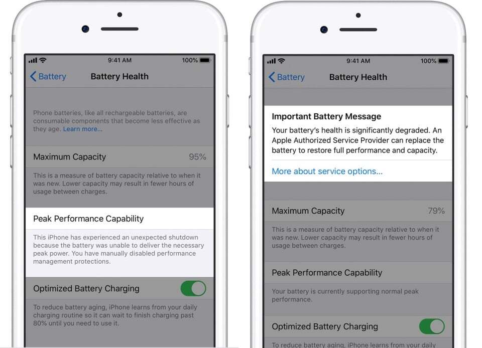 배터리 상태가 저하되면 애플에서 말하는 " 최고 성능 " 을 제공하는 능력도 저하됩니다.