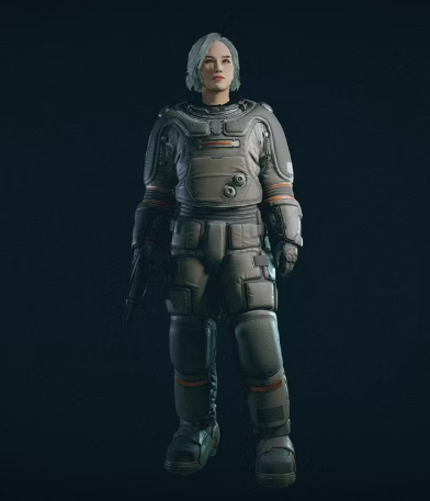 우주복은 상인에게서 구입할 수 있으며, 가끔 야생의 구조물에서 약탈할 수도 있으니 주의하세요. Star Roamer 및 독특한 Experimental Nishina Spacesuit 와 모델을 공유합니다.