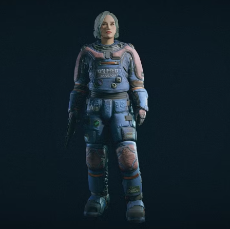 독특한 연한 파란색과 연한 분홍색 색상으로 알려진 Space Trucker 우주복은 정착된 시스템의 주요 도시보다는 하늘에서 많은 시간을 보내거나 행성을 탐험하려는 사람들에게 적합합니다.