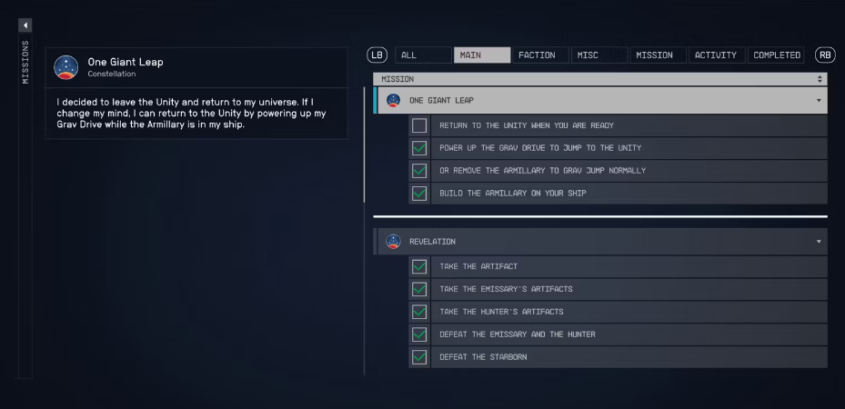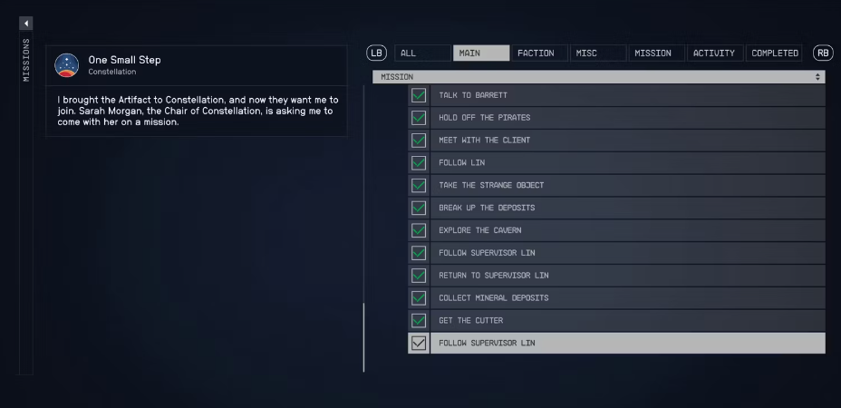 오픈 월드 RPG인 Starfield는 플레이어에게 동시에 여러 임무를 수행할 수 있는 자유를 제공합니다. 방향 감각 상실을 방지하기 위해 플레이어는 통계 메뉴 에 있는 임무 로그로 이동하여 현재 목표를 지정할 수 있습니다. 이렇게 하면 스캐너에 가상 경로가 표시되어 플레이어를 다음 임무 관련 목적지로 안내합니다.