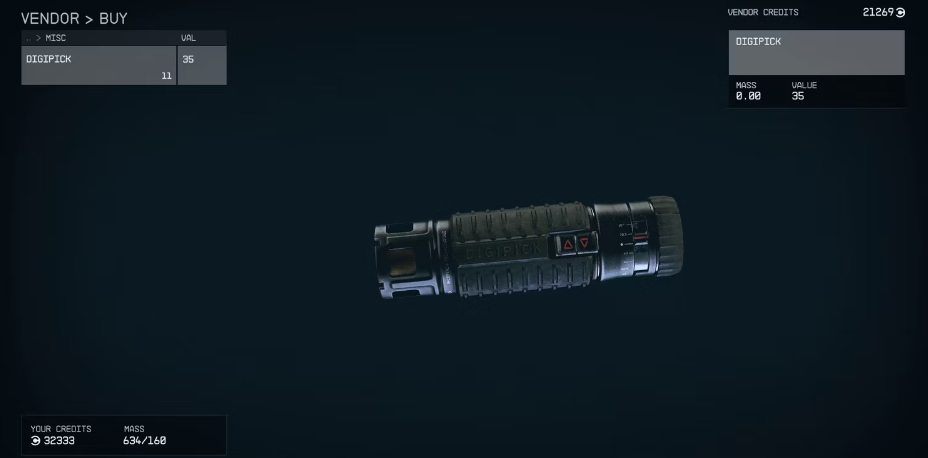 디지픽은 스타필드 에서 자물쇠 따기 에 중요한 아이템입니다. 잠긴 금고 뒤에 안전하게 보관된 귀중한 전리품을 만날 수 있으므로 플레이어는 인벤토리에 여러 개의 디지픽(Digipick)을 휴대하는 것이 좋습니다. (자물쇠 따기 시도의 성공 여부와 관계없이 사용 시 디지픽이 소모되니 주의하세요.)