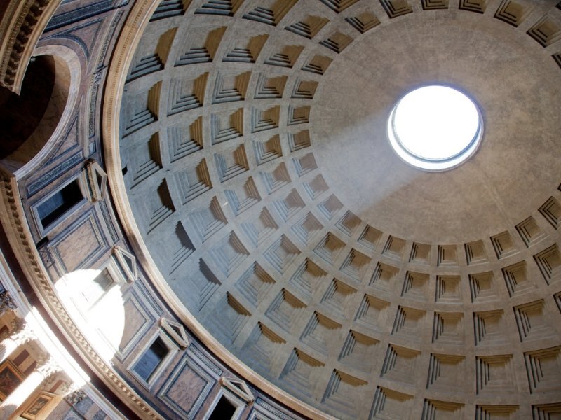 이 돔이 실제로는 성베드로 대성당보다 크다는 사실에 놀라실 것이고, 성전에 들어서자마자 돔 중앙에 있는 오큘러스를 올려다보면 이 돔이 유일한 돔이라는 사실을 깨닫게 될 것입니다. 자연광의 원천이므로 완전히 드러나 있습니다! 비는 약간 볼록한 땅의 중앙으로 직접 떨어지고 배수 시스템으로 향하게 됩니다.