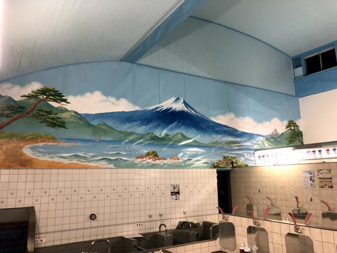 목욕탕 그림사 다나카 미즈키씨에 의한 페인트 후지가 아름답다. 그림은 몇 년에 한 번 그려진다.