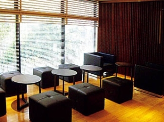 중후한 현관과 접수, 검은 가구가 늘어선 휴식실 등 차분한 분위기