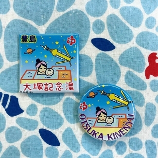 목욕탕 스탬프의 일러스트로 만든 오리지널 배지