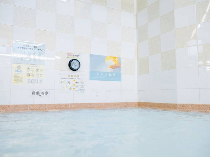 특주 입욕제를 투입한 명물 "우유 목욕". 살짝 달콤한 향기가