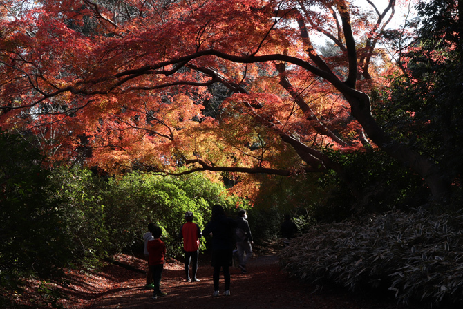 공원의 완성으로부터 90년 넘게, 아름답게 훌륭한 성장을 이룬 공원 내의 나무들. 특히 단풍의 시즌은 경사가 있는 산책로를 진행할 때마다 단풍나무, 쿠누기, 은행나무 등의 붉은색이나 금색의 색채가 미묘하게 변화해 질리지 않습니다.