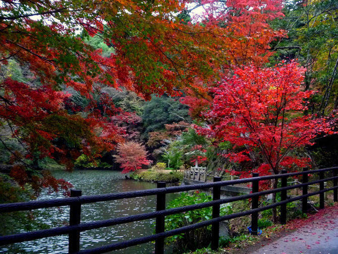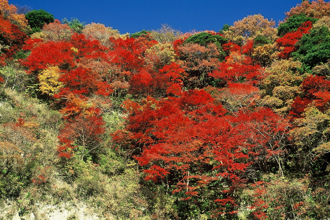 치바현 남부에서 이치하라시에 걸쳐 흐르는 요로강을 따라 오랜 세월에 의해 만들어진 「요로 계곡」. 단풍나무, 우루시, 나라 등 선명하게 물들인 나무들이 수면에 비치는 단풍을 즐길 수 있는 강변 산책로 등 넓은 지역에 다양한 단풍 명소가 점재하고 있습니다.