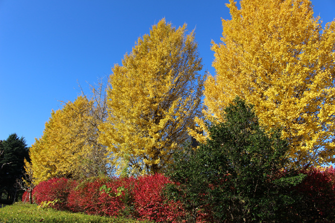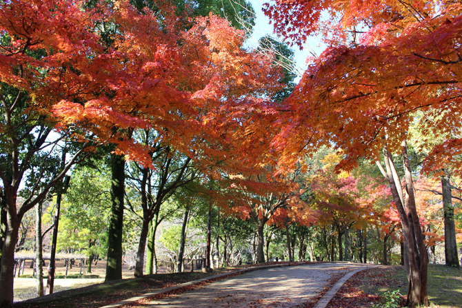 단풍의 시기에는, 아이들의 애슬레틱 스페이스 「모험의 트리데」의 단풍나무, 야구장 근처의 은행나무, 일본 정원 주변 등, 공원 내의 곳곳 이쪽이 아름답게 색이 됩니다.