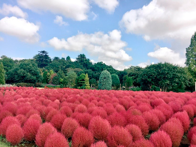 단풍보다 한발 빨리 10월에는 꽃판타지아의 코키아의 단풍이 볼 만한 곳에서 추천합니다. 또, 원내에는 필드 애슬레틱, 캠프·바베큐장, 포니 목장, 아쿠아벤처 등, 지형이나 숲을 살린 시설도 충실하고 있습니다.