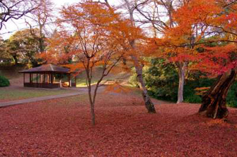 가을에는 원내에 심어진 15종 약 500그루의 단풍나무와 단풍나무가 햇볕에 물들어 생생한 단풍을 즐길 수 있습니다. 특히 매달려 다리의 「이즈미 다리」에서 바라보는 풍경은 숨이 가득한 아름다움입니다.