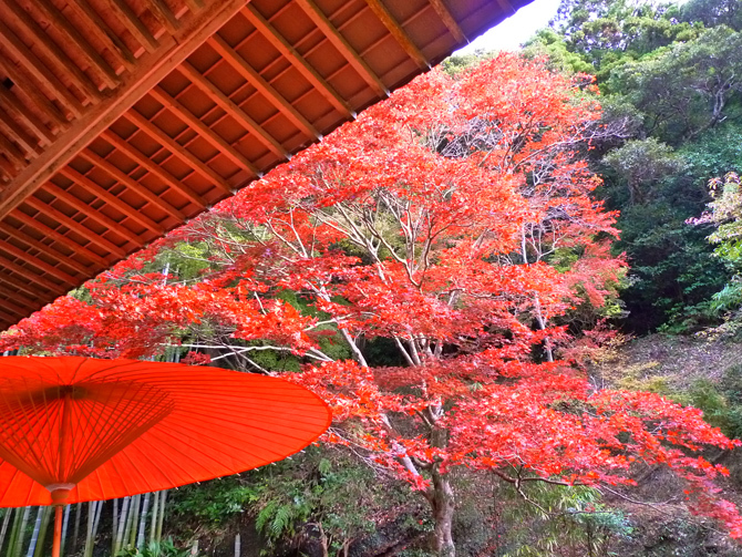 1300년 이상이나 계속되는 사원에서 우아하게 단풍 사냥을 즐긴다