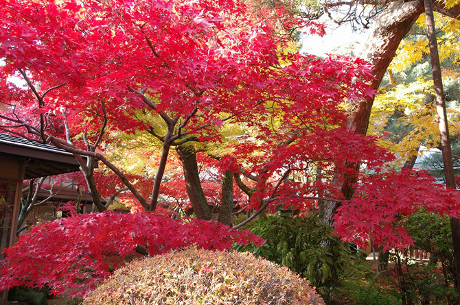 원내 전체에서 약 800그루 있다고 하는 모미지 중에서도, 단풍나무 계곡의 아름다움은 압권. 가을에는 경치 좋은 경치를 즐길 수 있습니다.
