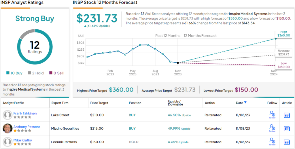 Newitter는 자신의 자신감을 전달하면서 INSP가 목표 가격 240달러를 뒷받침하는 매수 의견을 공유했다고 평가했습니다. 이는 현재 수준 대비 65% 상승 여력이 있는 수치이다.
