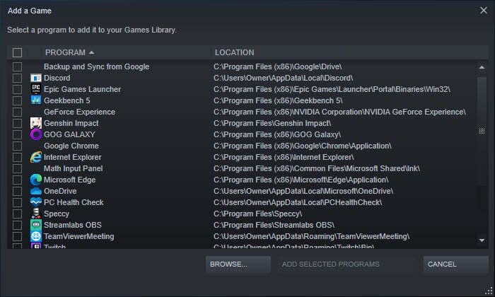 인터페이스 왼쪽 하단에 있는 게임 추가를 클릭한 다음 스팀게임이 아닌 게임 추가를 선택하면 Star Wars: Battlefront II 또는 다른 PC 게임을 Steam 라이브러리의 일부로 표시할 수 있습니다. 그런 다음 제목을 선택하고 선택한 프로그램 추가를 클릭하세요. 이것도 참 쉽죠잉~