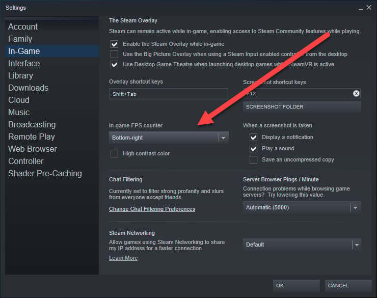 예를 들어, PC에 설치된 새로운 GPU 로 게임이 어떻게 작동하는지 확인하고 싶다고 가정해 보겠습니다. Steam > 설정 > 게임 내로 이동하여 FPS 카운터를 활성화하세요. 그런 다음 선택한 게임을 부팅하면 화면에 프레임 속도 카운터가 표시됩니다.