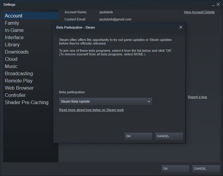2. Steam 베타에 참여하세요